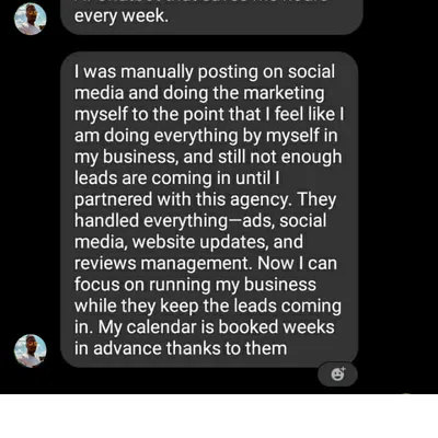 Unlike traditional agencies, we don’t just run ads and leave you to manage the results. We handle everything on the backend—Meta ads, AI-powered integrations, reputation management, email & SMS sequences—so you can focus entirely on running your business. Plus, we only take one business per city, ensuring you’re the exclusive local leader.